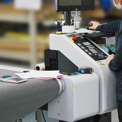 様々な形状に1枚から量産まで正確に裁断する優れた設備。裁断作業はシート加工の原点であり精度を要求され、要求に応える設備を保有しております。