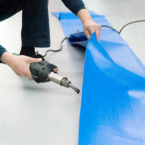 生地に応じた設備を使用し、細かい溶着から量産の溶着まで、優れた機械が仕様に応じ活躍します。