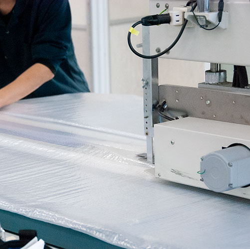 あらゆるシート加工にかかせない、縫製技術をささえる各種ミシンを取り揃えております。1本針、2本針、コンピューターミシン、超音波ミシンなどがあり、お客様のニーズにお応えいたします。